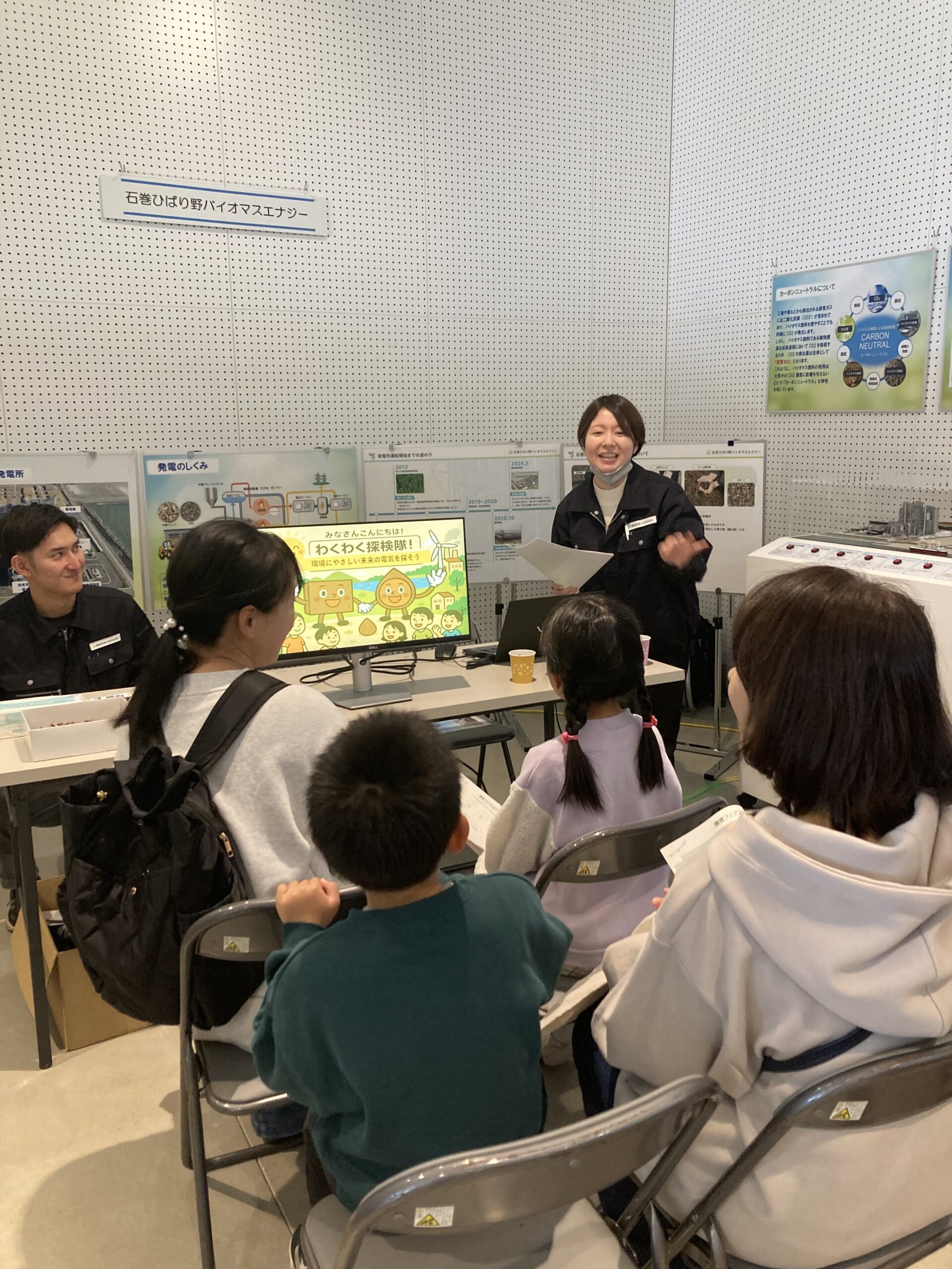 11月16日(日)にマルホンまきあーとテラスで開催された石巻市「環境フェア2025」に企業ブースを出展しました。当社は「自然とエネルギーが共生する未来を感じよう」というテーマを掲げ、当日は総勢50名近い方々にブースにお越し頂き、環境にやさしい電気の作り方を紙芝居も交えてご説明しました。