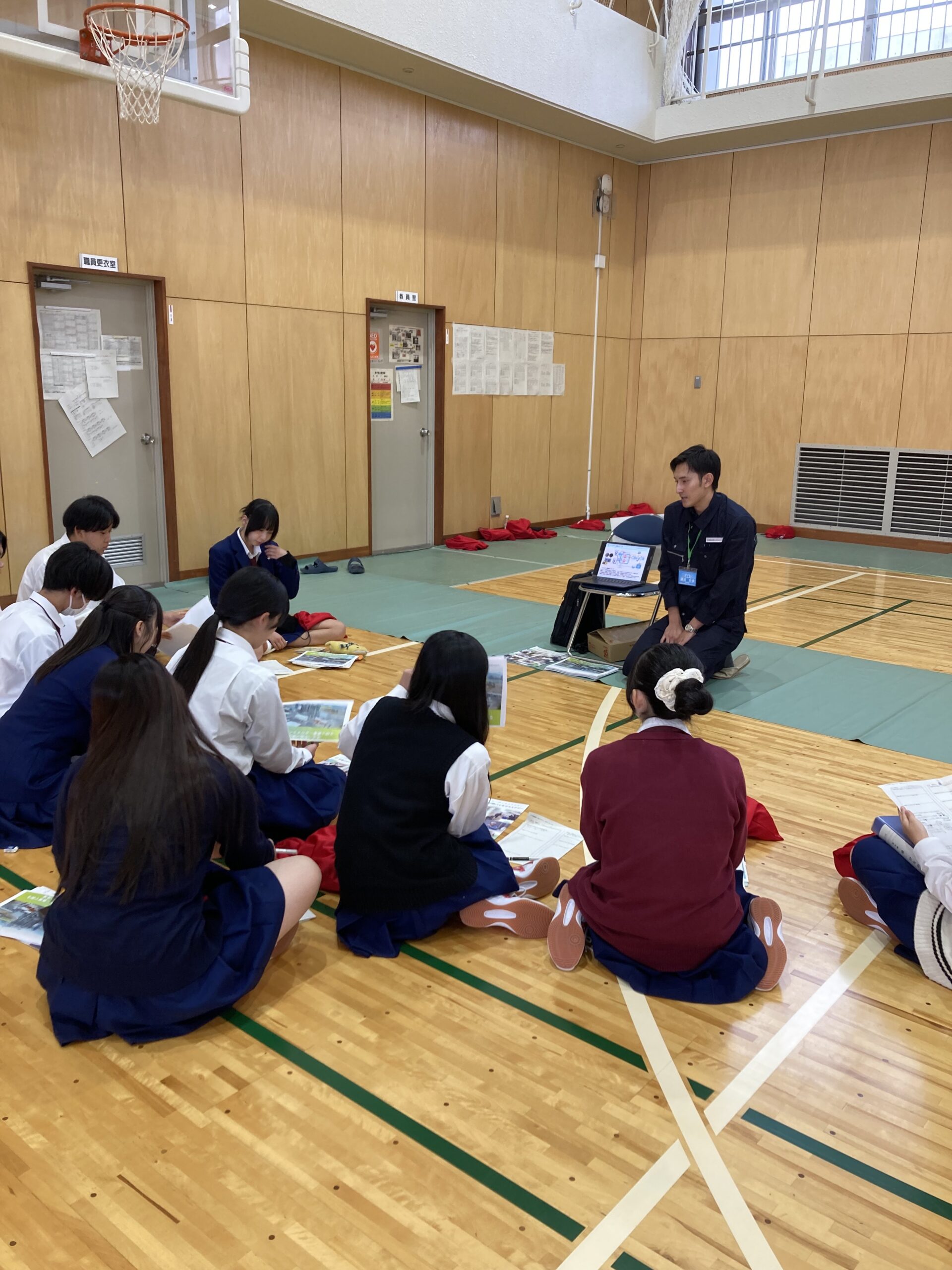 10月14日に石巻西高校で開催された「街ライブラリー」に参加しました。「街ライブラリー」は同校の1学年が地域の事業者や団体と一緒に総合的な探求を行う「街ミッション(地域課題探求フィールドワーク)」の事前授業の一環で、当日は37の石巻・東松島地域の事業所・団体が集まりグループセッション授業を実施し、当社からはバイオマス発電事業の概要と脱炭素化社会への貢献を目指す事業目的などを説明しました。